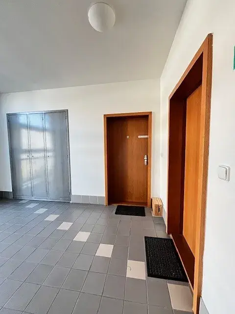 Dispozice- předsíň s vestavěnou šatní skříní, obývací pokoj s kuchyňskou linkou, jídelnou a obývací relaxační části, malá ložnička s vestavěnou skříní. Koupelna se sprchou, toaletou a skříní. V suterénu domu sklep 3.5m2, parkovací místo.