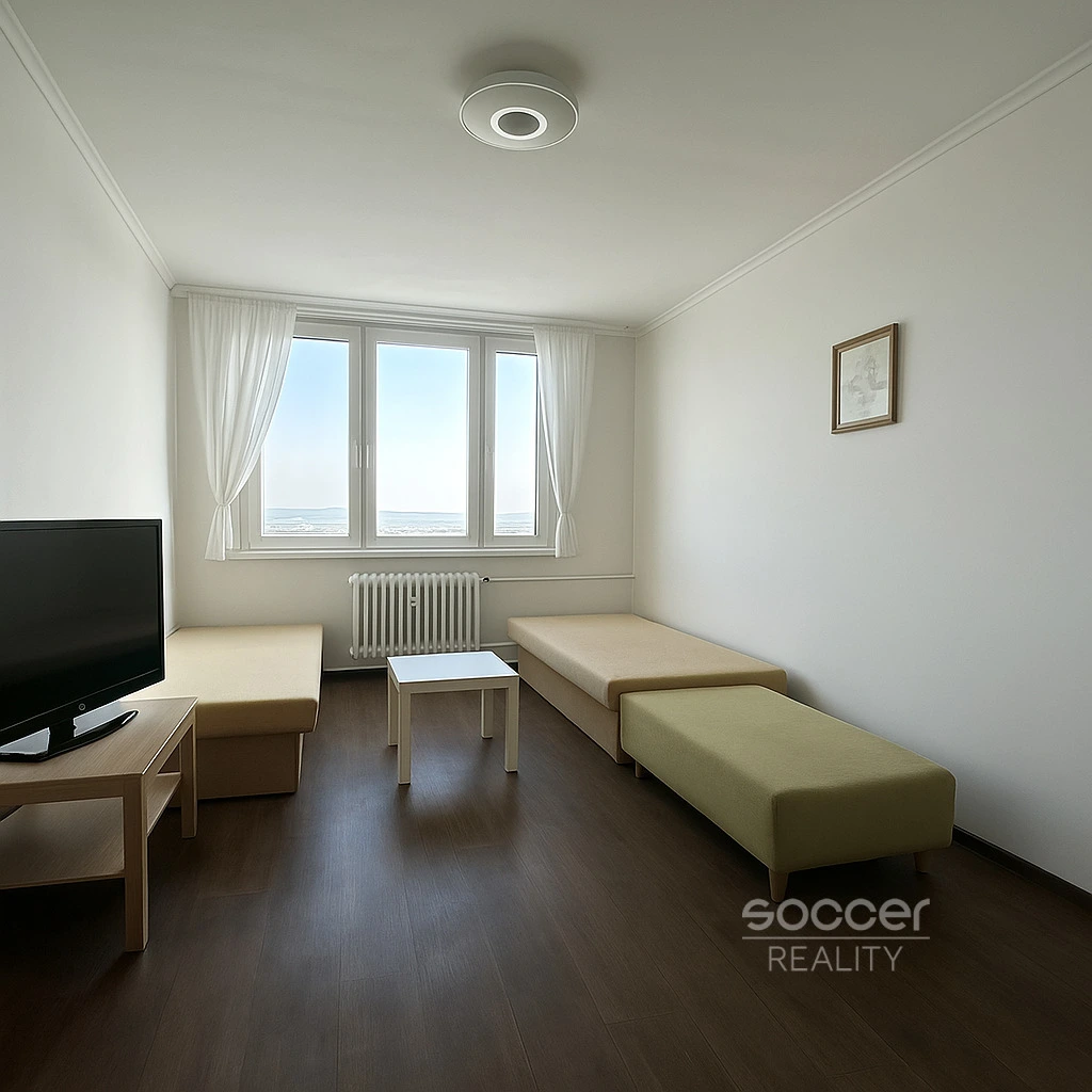 Soccer Reality vám zprostředkuje pronájem bytu o dispozici 2+kk s výměrou 47 m² v ulici Za Sídlištěm, Praha 4 – Komořany. Byt s nádherným výhledem se nachází v 10. nadzemním podlaží z celkových 12 podlaží udržovaného panelového domu.