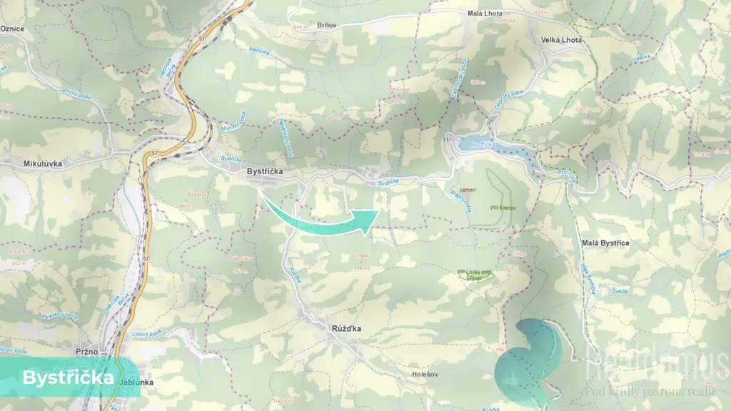 Pozemky se nacházejí v klidné části přírody v okolí obce Bystřička, v oblasti charakteristické rozsáhlými lesními porosty a minimální zástavbou. Lokalita nabízí stabilní prostředí vhodné pro dlouhodobé držení lesních pozemků.