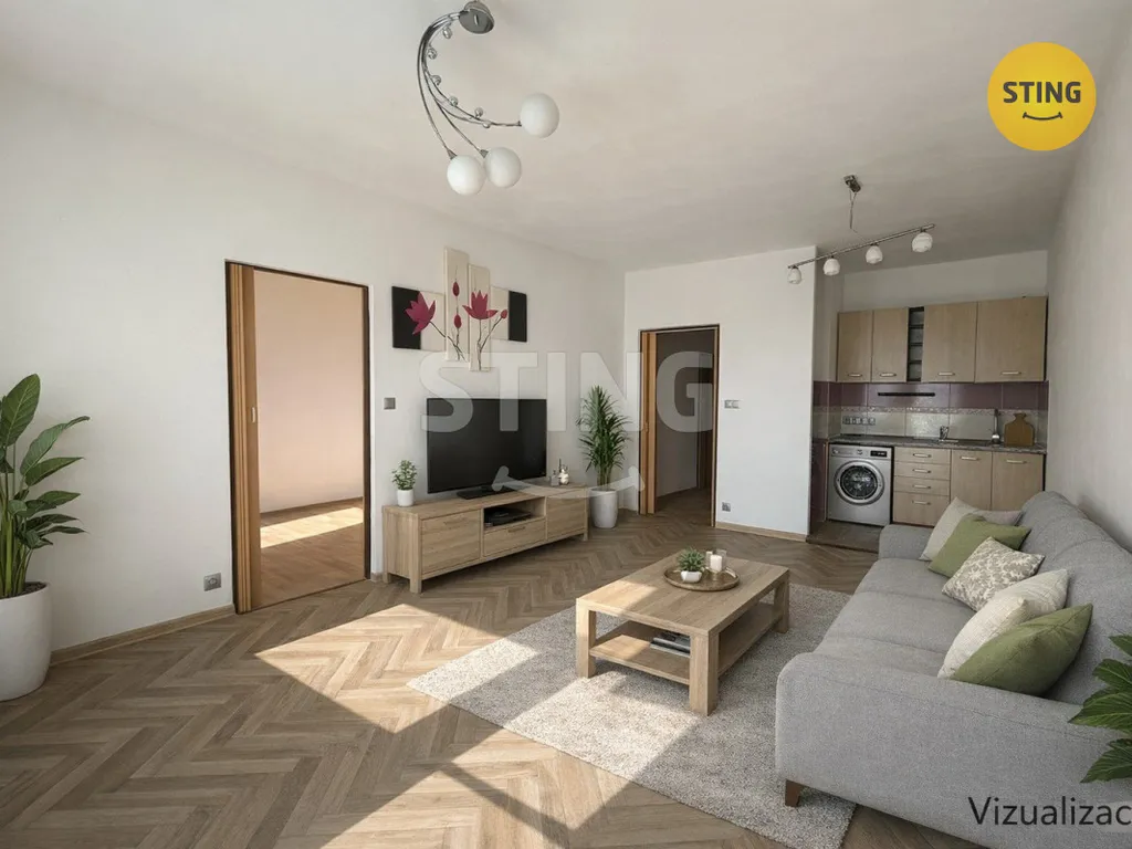 Byt se skládá z ložnice a obývacího pokoje propojeného s kuchyňským koutem, který je vybaven sklokeramickým sporákem a digestoří. Velkou předností bytu je prostorná lodžie s příjemným výhledem, která přímo vybízí k odpočinku u kávy.