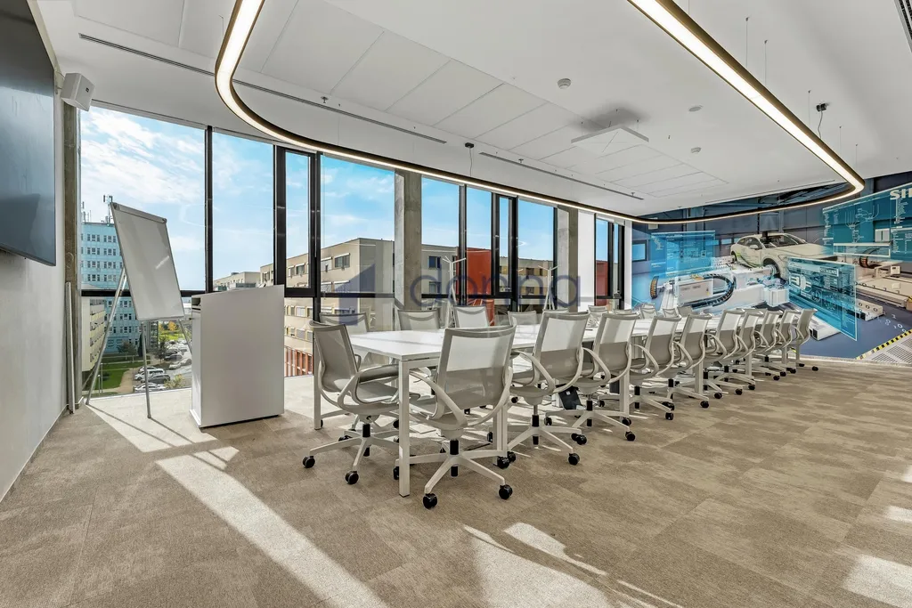 Prosklená budova ve tvaru písmene U s pěti nadzemními a dvěma podzemními podlažími. V budově nyní nabízíme k pronájmu kancelářské jednotky v 5.NP o rozloze od 250 m2 do 1365 m2. Díky efektivnímu půdorysu můžete využít stávající dispozice prostor, nebo si je flexibilně přizpůsobit svým představám. Aktuálně nabízené kanceláře jsou k dispozici ve velmi vysokém standardu včetně zdvojených podlah, LED osvětlení. Dominantou celého prostoru je atrium s bohatou zelení a vodním prvkem. K pracovnímu komfortu přispívá také jídelna přístupná všem nájemcům a kolárna.