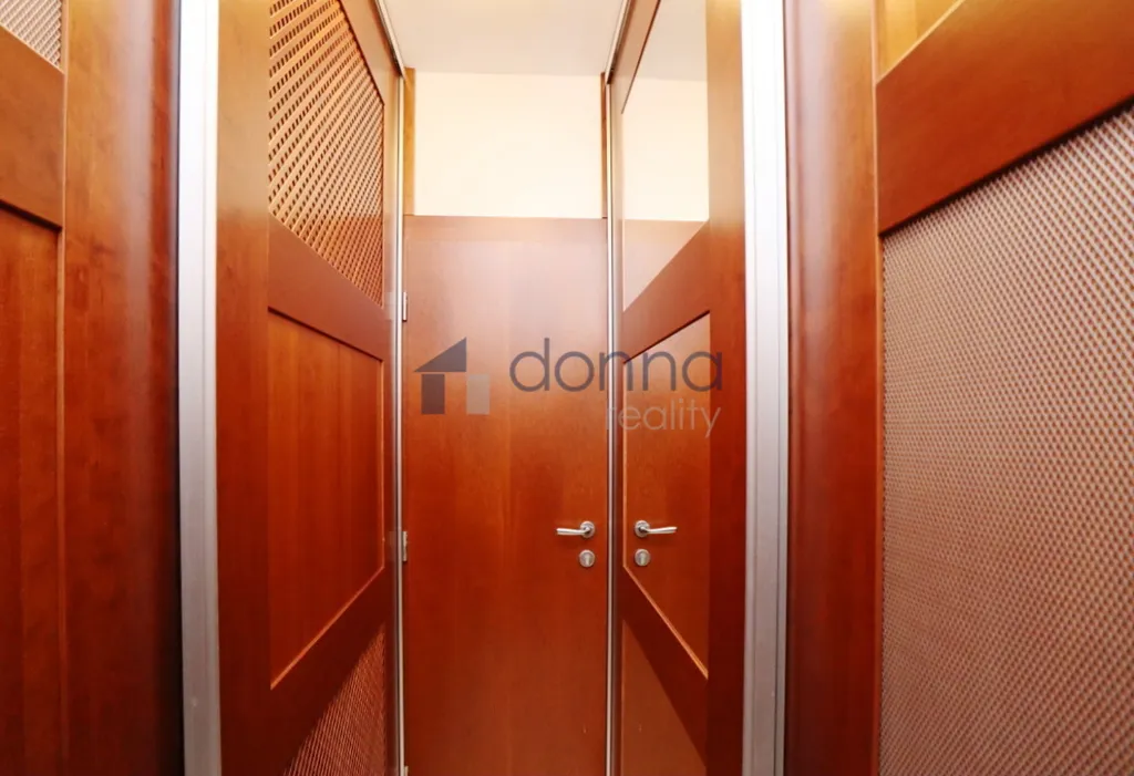 Nabízíme k pronájmu byt 2+kk/2xT, 82m2, v posledním patře rezidenčního domu s recepcí 24/7 a společnou zahradou pro obyvatele domu, v ulici U Nikolajky, Praha 5 - Smíchov. Byt je kompletně zařízený a sestává ze vstupní chodby, šatny, velké ložnice se vstupem na jednu terasu, koupelny s rohovou vanou a sprchou, prostorného obývacího pokoje s kuchyňským koutem a komorou s trezorem. WC je zvlášť. Z obývacího pokoje se vchází na druhou terasu. Obě terasy mají otevíratelnou střechu. V kuchyni lednice s mrazákem. myčka, mikrovlnná trouba, elektrická varná deska a digestoř. V koupelně je pračka. Topení a ohřev vody je centrální. Na podlahách dřevěné parkety a dlažba. Na oknech jsou venkovní žaluzie. K bytu je možnost si pronajmout i garážové stání. Dům se nachází v klidné části Smíchova.