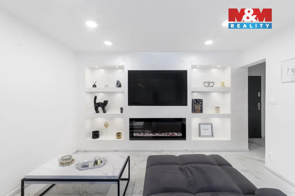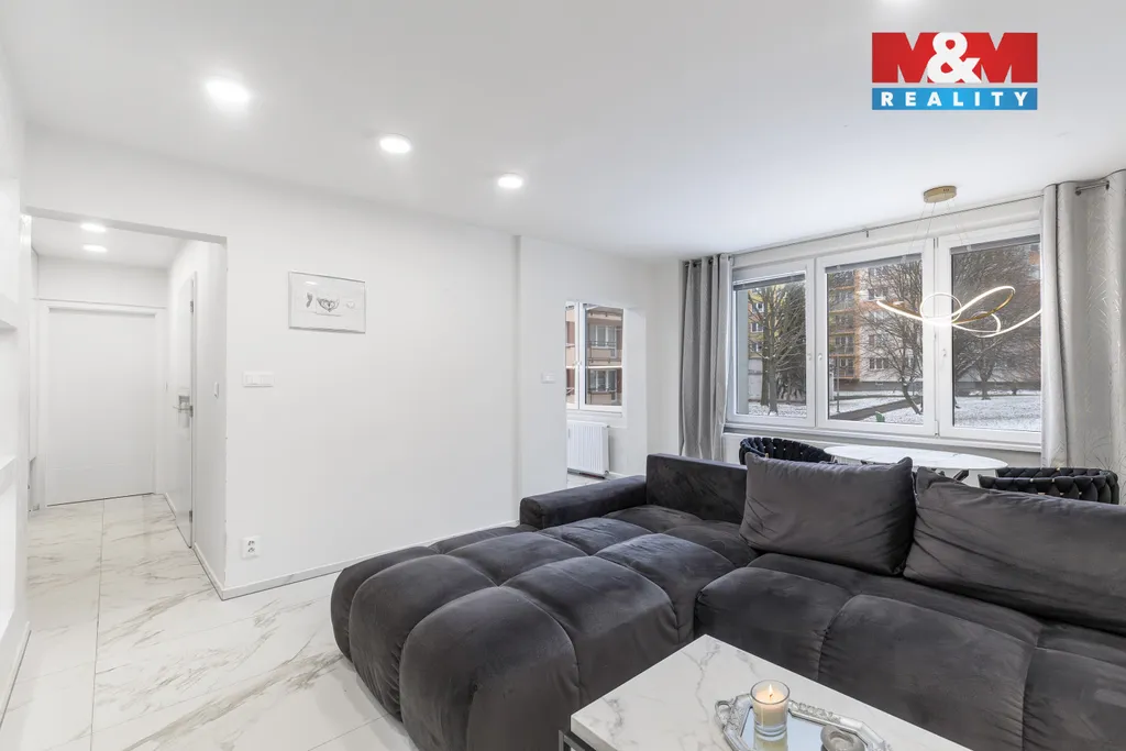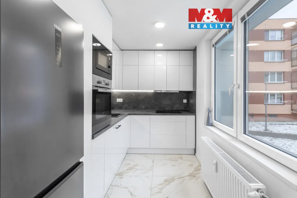 Exkluzivně nabízíme k prodeji byt 2+1 v osobním vlastnictví, po nadstandardní rekonstrukci, o podlahové ploše 62 m2. Nachází se ve zvýšeném přízemí zrevitalizovaného nízkopodlažního domu v klidné části ulice Břustkovy, v Ostravě Výškovicích. Byt disponuje prostorným obývacím pokojem s jídelním stolem a vstupem do kuchyně, velkou ložnicí, umožňující umístit kromě vestavěné skříně i pracovní kout, předsíní s další vestavěnou skříní a také koupelnou s vanou, s dvojicí umyvadel a vestavným WC. Rekonstrukce bytu v moderním designu zahrnovala novou elektroinstalaci, stropní pohledy, vydláždění podlah italskou luxusní dlažbou, dvě vestavěné skříně a taktéž kuchyňskou linku v bílém lesku a vestavěnými spotřebiči. Bonusem je skutečnost, že vybavení bytu včetně kvalitní sedací soupravy, postele, jídelního stolu s židlemi, veškerých televizí i efektního elektrického krbu je v ceně nemovitosti. Výhodou je také blízkost zastávek MHD, škol, školek, obchodů i možnost procházek v Bělském Lese.