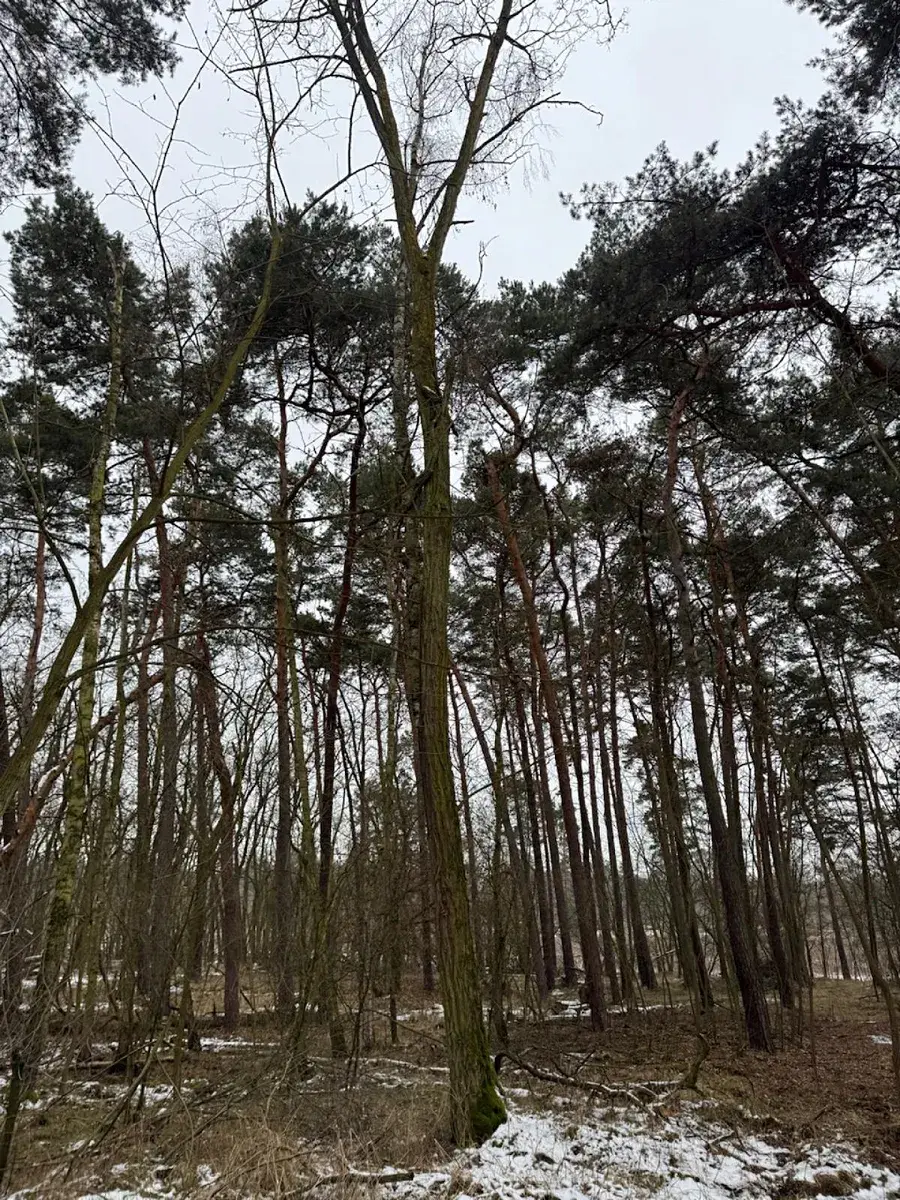 - p.č. 586/1 vedená jako lesní pozemek o celkové výměře 23 740 m2, z toho vlastníme podíl 1/9 tedy 2 638 m2 (stáří lesa 128 let - zastoupení dřevin borovice, stáří lesa 26 let - zastoupení dřevin dub, akát),