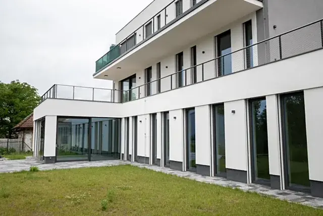 Ke standardu bytu patří tepelné čerpadlo, velkoformátová okna s elektrickou žaluzií, reflexní folií, podlahové vytápění.