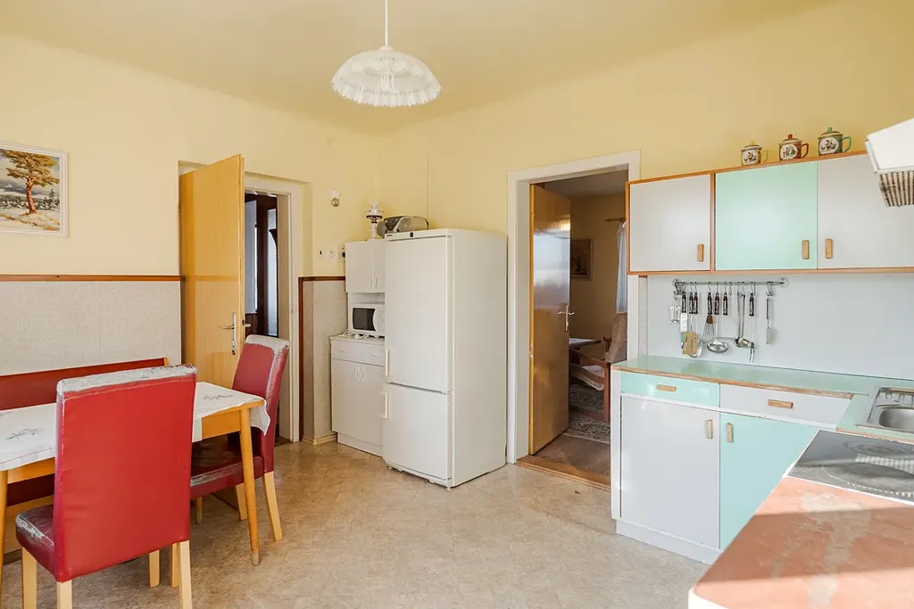 Rodinný dům se zahradou a garáží, Litomyšl – ul. V. K. Jeřábka Exkluzivně nabízíme k prodeji rodinný dům v Litomyšli, na klidné a vyhledávané adrese J. K. Jeřábka. Nemovitost se nachází v původní zástavbě rodinných domů, na pozemku o celkové výměře 816 m². Díky svému charakteru, dispozičnímu řešení i přilehlým prostorám nabízí dům možnost pohodlného rodinného bydlení, kombinaci bydlení s podnikáním nebo vícegenerační využití. Jedná se o dům postavený v roce 1960, který je ve velmi udržovaném stavu – pravidelně temperovaný, čistý a pečlivě opečovávaný současnými majiteli. Stavba je napojena na všechny inženýrské sítě – elektřinu, plyn, vodovod i kanalizaci. Dispozice domu aktuálně zahrnuje 4 obytné místnosti a kuchyň, doplněné o další užitné prostory. Vstupní chodba ústí do centrální části domu, ze které lze vystoupat do podkroví s jednou obytnou místností a půdním prostorem, nebo pokračovat do kuchyně s obývací částí, ložnice, špajzu, koupelny a toalety. Na obytnou část navazují další místnosti určené k uskladnění a prostorná garáž. Pozemek kolem domu je rovinatý a slunný, orientovaný do vnitrobloku se soukromím. Nachází se zde také vedlejší stavby – původní hospodářské objekty, které lze využít k drobnému chovu, dílně či dalšímu zázemí podle potřeb nového majitele. Lokalita nabízí skvělou dopravní dostupnost, kompletní občanskou vybavenost a pohodlný přístup do centra města. Litomyšl je stabilně jedním z nejžádanějších měst pro bydlení ve východních Čechách – ať už díky své architektuře, kulturnímu životu nebo celkové atmosféře. Nemovitost je k dispozici dle dohody. Pro více informací nebo sjednání prohlídky nás neváhejte kontaktovat.