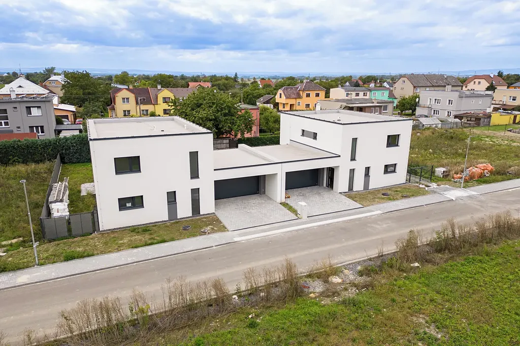 Pozemek o rozloze 528 m² nabízí dostatek prostoru pro venkovní aktivity nebo zahradní úpravy podle vašich představ. Dům disponuje dvěma garážemi a dvěma dalšími parkovacími místy, což je ideální pro vícečlenné rodiny či návštěvy. Výhodou lokality je dobrá dostupnost dopravních spojů, včetně vlakového nádraží, dálnice, silnice, MHD i autobusové dopravy, což usnadňuje dojíždění do okolních oblastí.