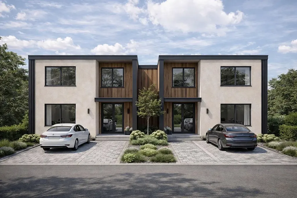 Dům je součástí komorního projektu tvořeného pouhými třemi dvojdomy, který zajišťuje klidné a příjemné bydlení. Pokud hledáte současné bydlení v tiché lokalitě, právě jste jej našli.