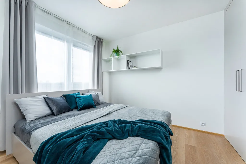 Byt je vybavený kuchyňskou linkou včetně všech potřebných spotřebičů. Jeho součástí je prostorná koupelna se sprchovým koutem a parní pračkou. Samozřejmostí je také vybavenost veškerým nábytkem. Těšit se můžete na postel s pohodlnou kvalitní matrací (dvě možná uspořádání – dvoulůžko nebo dvě oddělené postele pro spolubydlení). Dále je v bytě k dispozici televizor, dostatek promyšlených úložných prostor a v neposlední řadě rozkládací pohovka, na které se pohodlně vyspí dvě osoby. Bonusem bude příjemné posezení na prosluněném balkonu.