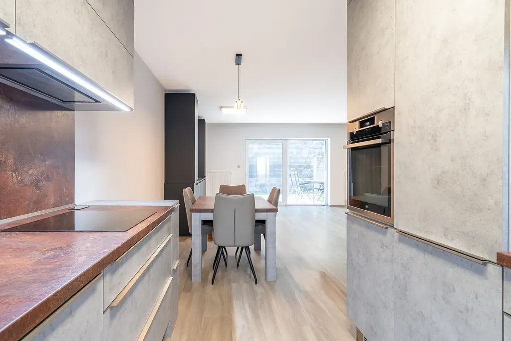 Byt disponuje prostornou terasou o velikosti 30 m² a zahradou o další výměře cca 30 m², kde si můžete užít relaxaci na čerstvém vzduchu. Součástí prodeje je také garáž a další kryté parkovací místo, což zajišťuje pohodlný přístup k Vašemu vozidlu. Klimatizace zajišťuje optimální tepelný komfort po celý rok. Jedná se o krajní byt, který má pouze jeden sousední byt z jedné strany.