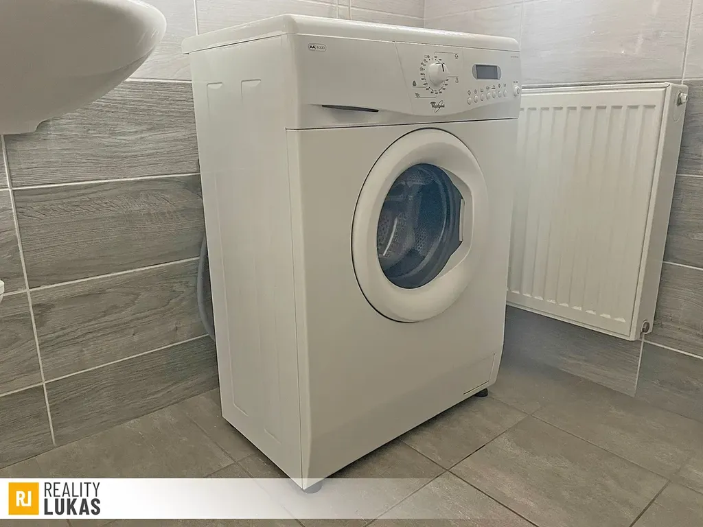 • byt je z větší části zařízený - kuchyňský stůl, židle, botník, pračka, lednice, postel, 2x stojan na oblečení, komoda na oblečení, křeslo, odkládací stolek u postele