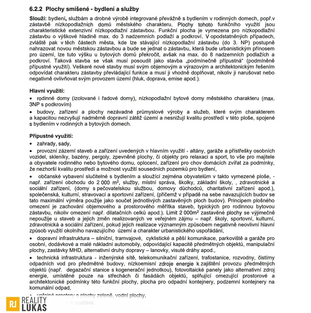 • Podmíněně přípustné využití: rodinné domy, hotely, koleje, internáty, lehká výroba a služby s nízkým dopadem na okolí (hluk, emise, doprava).