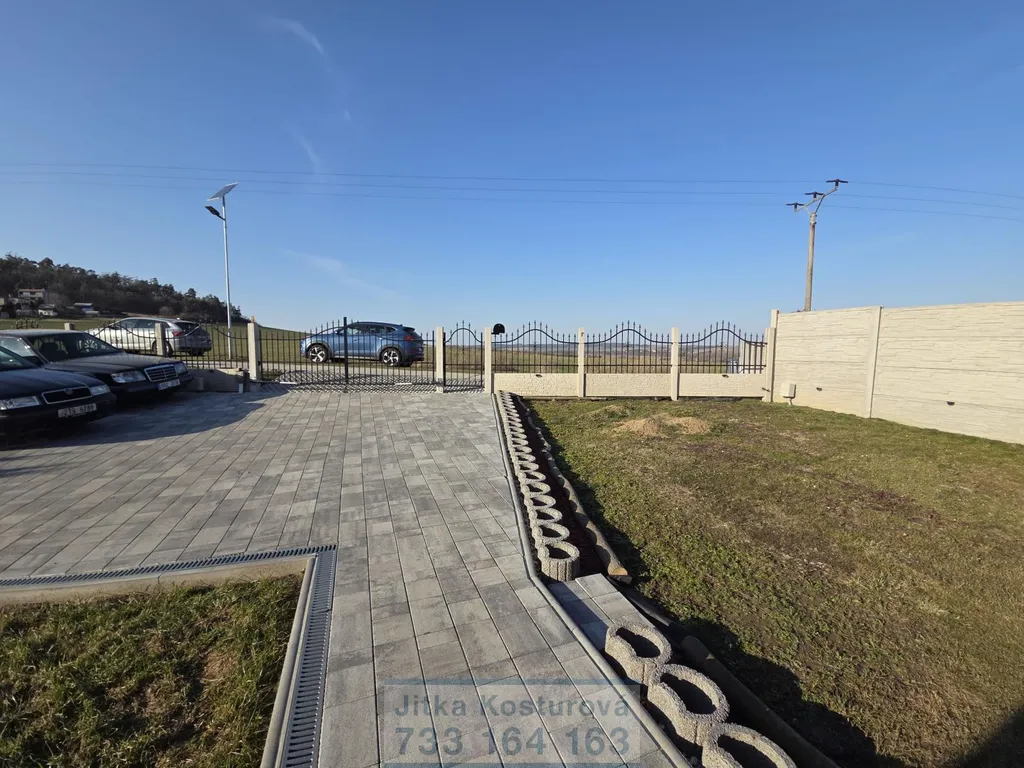 Součástí pozemku je terasa, pergola s osvětlením, dřevěný zahradní domek, nádrž na dešťovou vodu o objemu 5 m and sup3; a venkovní LED osvětlení chodníku na čidlo. Pozemek je oplocen a vjezdová brána je na automatické ovládání.