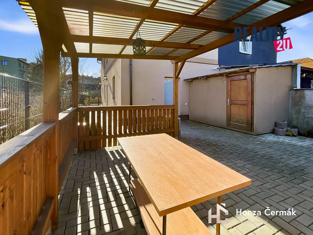 K bytu náleží také možnost plného využívání zahrady s pergolou, která je ideálním místem pro relaxaci na čerstvém vzduchu.