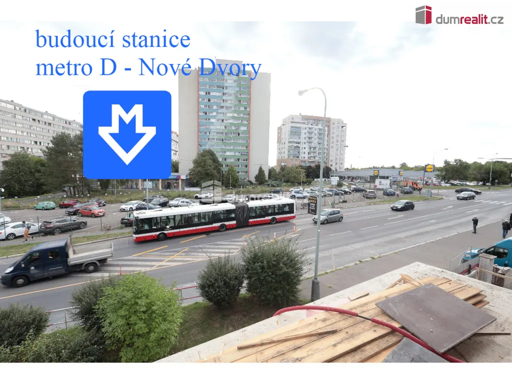 Dumrealit.cz Vám zprostředkuje exkluzivně pronájem zcela nového komerčního prostoru o velikosti 132,07 m², v nově stavěné budově (PENB – B) přímo u budoucí stanice metra D - Nové Dvory (přes ulici Štúrova), která bude dokončena v druhé polovině roku 2026 - info v RK. Tento prostor se nachází ve druhém patře třípatrové nízkoenergetické budovy s fotovoltaikou, rekuperací a s výtahem a bezbariérovým přístupem. Prostor 132,07 m² může bude kolaudován jako kancelář - dle dohody nájemce může rekolaudovat na jiný obchodní prostor - výběr je plně na klientovi. K dispozici bude plně vybavená kuchyňka s denní místností, 2 x toaleta a 2 x úklidová místnost - viz plánky v prezentaci. K prostoru lze dopronajmout kryté parkovací stání a popř. sklepě. V domě bude 12 parkovací stání v suterénu domu, 6 x sklep a dále lze pronajmout až 3 venkovní parkovací stání. Aktuálně se v domě instalují okna, sdk příčky a klimatizace + rekuperace, v prostorech bude podlahové topení. Tato budova bude dokončena a zkolaudována v druhé polovině roku 2026, již nyní mohou probíhat prohlídky a úpravy prostor před dokončením přímo na přání nového nájemce. Velmi doporučuji všem zájemcům, kteří již nyní hledají atraktivní prostor u budoucí stanice metra D – Nové Dvory, v ulici Štúrova, Praha 4. Ev. číslo: 654647.