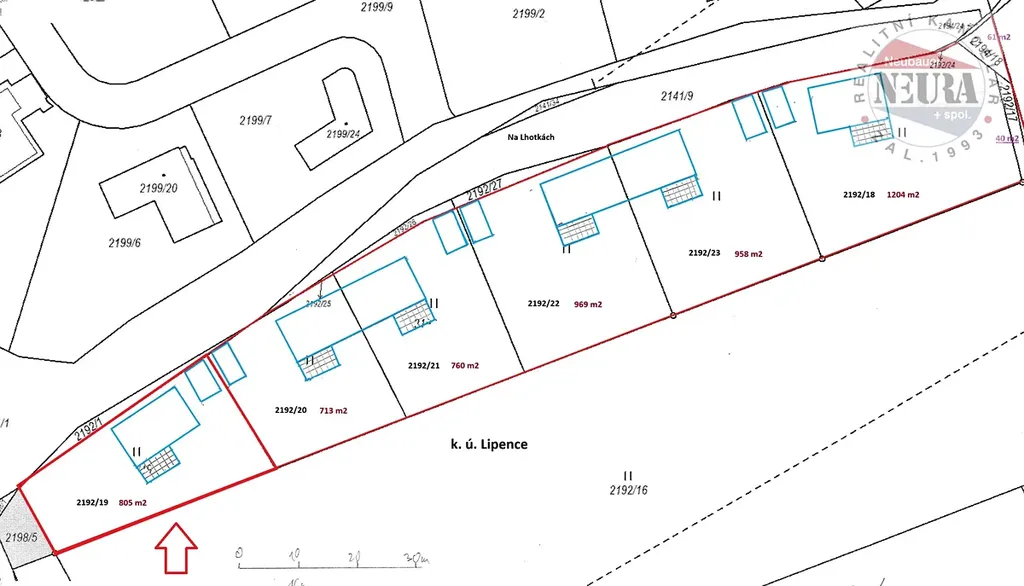 Prodej stavebního pozemku Praha, Lipence, ul. Na Lhotkách,