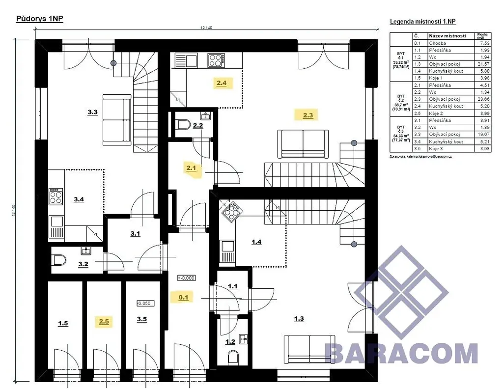 • Mezonetové řešení: Chytré oddělení denní části v přízemí a klidové zóny (ložnice a dětský pokoj) v patře zajišťuje klid, i když se zrovna v obýváku díváte na televizi.