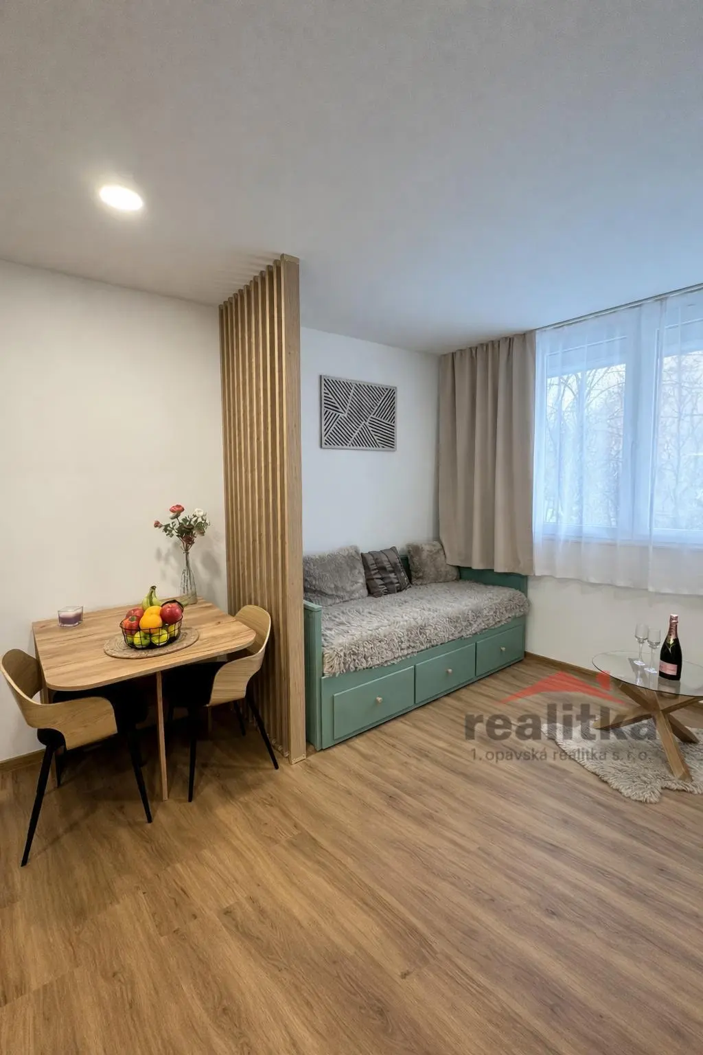 Nabízíme prodej luxusního bytu 1+kk, 21m2 v Opavě na ul. Grudova. Byt se nachází ve 3. patře panelového domu s výtahem. Dům je po celkové revitalizaci, je bezbariérový a výtah zastavuje přímo u bytu. Byt prošel v minulých měsících totální, nádhernou, kvalitní rekonstrukcí. Jsou zde plastová okna s izolačním trojsklem, nová elektřina, omítky, vinylová podlaha, kuchyňská linka ve vysokém lesku, lednice, indukční deska, elektrická trouba, odsávač par, šatní skříň, rozkládací gauč s úložným prostorem, televizní stolek, televize, stůl, židle. V předsíni je odkládací stěna, v koupelně velkoplošné obklady ve vysokém lesku, sprchový kout, umyvadlová sestava a pračka s prostorem na sušičku. Vchodové dveře jsou bezpečnostní. Byt má nízké náklady na bydlení FO je ve výši 172,-kč. Na domě není žádný revitalizační úvěr. K bytu náleží sklepní kóje. Parkování přímo před domem, byt je situovaný do vnitrobloku, v blízkosti je MHD, centrum, obchod. Zájemci o prohlídku dle domluvy s paní Gratzovou.