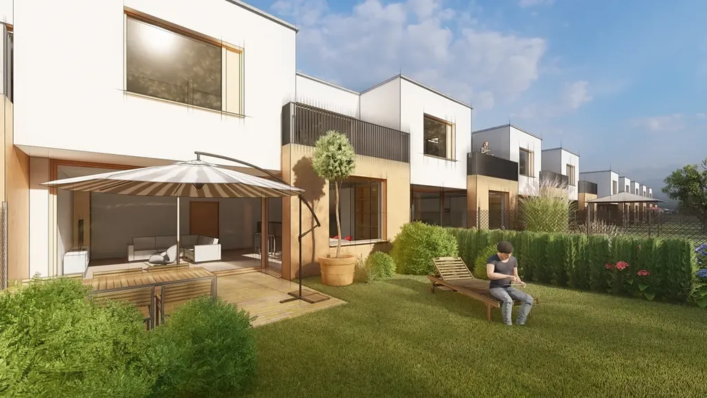 Novostavba rodinného domu 5+kk na prodej v Mladé Boleslavi. Je součástí moderního ekologického projektu ECO Village Podchlumí. Celkem 38 nízkoenergetických rodinných domů poskytuje jedinečný komfort moderního bydlení v harmonii s okolní krajinou venkova, přesto kousek od městské vybavenosti. Dispozice 4+kk a 5+kk, ceny od 11 566 915 Kč. Dům je navržen s ohledem na udržitelnost šetřící nejen přírodu, ale i vaší peněženku, ať už jde o použití přírodních materiálů či energetickou efektivitu. Velká okna poskytují dostatek přirozeného světla a zahrady s terasami umožňují přímý kontakt s okolní zelení. Nechybí ani garážové a venkovní parkovací stání. Interiér prvního podlaží tvoří prostorný obývací pokoj s přístupem do zahrady, kuchyňským koutem a jídelním prostorem, ložnice s walk-in šatníkem, vstupní hala propojená s garáží pro jeden vůz, chodba, koupelna se sprchovým koutem a toaletou, technická místnost a schodiště. Ve druhém patře se nachází dvě ložnice s walk-in šatníky, pracovna s přístupem na částečně zelenou střešní terasu, koupelna s vanou a sprchovým koutem, samostatná toaleta prádelna a chodba. Standardy zahrnují dřevěné podlahy a schodiště, keramické obklady a podlahy v koupelnách, kuchyni a vstupní hale, velkoformátová okna s izolačními trojskly, podlahové vytápění s možností chlazení, rekuperaci vzduchu, využití tepelného čerpadla, elektricky ovládané žaluzie, rychlý internet, dálkově ovládané brány a branky pro vstup na pozemek, příprava pro instalaci fotovoltaických panelů a možnost elektronického zabezpečení domu. Možnost klientských změn. Výborná dostupnost, 5 minut chůze na zastávku MHD, 10 minut k Městskému bazénu, koupališti, cykloparku Štěpánka či Klinice Dr. Pírka. Školy, historické centrum, nákupní centra Bondy a Olympia či výjezd na dálnici D10 pouhých 5 minut jízdy. Mladá Boleslav navíc nabízí Vysokou školu Škoda Auto, malebné kavárny a hospůdky, řadu sportovišť, restaurace světových kuchyní či populární lokální pivovar eMBe. Praha za rohem, 30 minut na Černý Most či do Letňan s nákupními centry a stanicemi metra, za hodinu na Václavském náměstí. Mladá Boleslav je navíc součástí příměstské pražské hromadné dopravy. Dům je dokončen a připraven k nastěhování. Pro kompletní informace o projektu nás neváhejte kontaktovat nebo navštivte webovou stránku ecovillagepodchlumi.