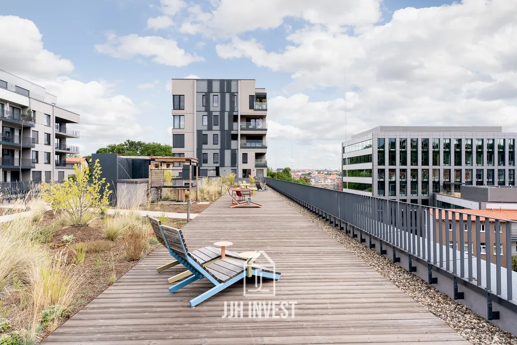 - Klidný vnitroblok a střešní zahrada s relaxačními zónami