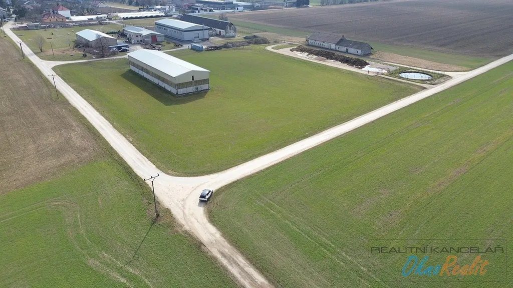 Pozemky o velikosti 10.500 m2 (bude se vytvářet nový Geometrický plán) ovlivněny uzemním plánem (výroba, služby). Zpevněná komunikace inženýrské sítě v dosahu cca el.100m, voda, kanalizace cca 300-350 m. Pozemek je rovinatý a je navázán na výrobní areály a zemědělské stavby.