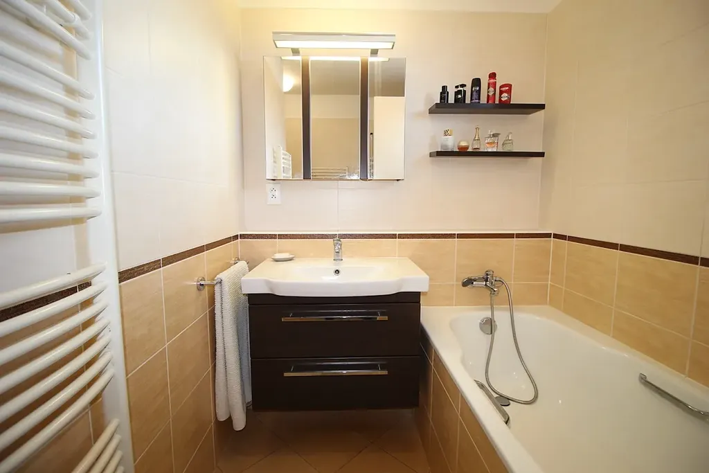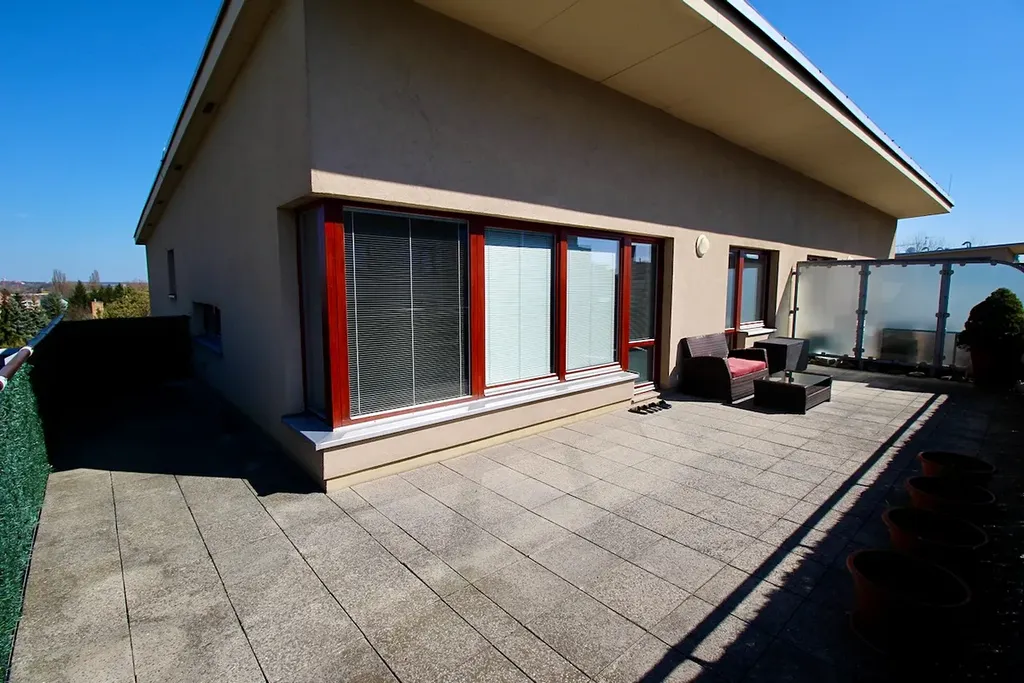 Exkluzivně nabízíme k dlouhodobému pronájmu krásný a velmi prostorný byt 3+kk s terasou, sklepem a garážovým stáním o celkové ploše 139 m2 v ulici Laudonova v pražských Štěrboholech ve třetím patře třípatrové novostavby s výtahem. Dům je součástí developerského projektu Štěrboholské zahrady a nachází se na velmi klidném místě vedle původní zástavby rodinných domů. Budova je obklopena velkou soukromou zahradou se spoustou zeleně a k bytu navíc patří vlastní prostorná terasa navazující na obývací pokoj s kuchyní. Byt je vybaven moderní kuchyňskou linkou ze studia Sykora se spotřebiči Siemens. Součástí bytu je dále obývací stěna s televizí Samsung a čtyři vestavěné skříně. V komoře se nachází pračka a sušička. V bytě může zůstat také další nábytek včetně kompletně zařízeného dětského pokoje pro dvě děti. Parkovat je možné před domem nebo v suterénu budovy, kde je k dispozici jedno garážové stání a sklep, jejichž pronájem je již zahrnutý v ceně. Ve Štěrboholech se nachází mateřská škola, základní škola a obchodní centrum Europark, Retail Park a Fashion arena. V blízkosti bytu je autobusová zastávka Štěrboholy, odkud jízda na stanici metra Depo Hostivař trvá 10 minut. V pěší dostupnosti je také zastávka autobusu Radiová s přímým spojením na Prahu 4 a Prahu 9. Rovněž je možné využít vlakové spojení na Masarykovo nádraží z vedlejších čtvrtí Kyje a Dolní Počernice. Byt bude volný k nastěhování od 1.6.2026 a je určen pro maximálně 4 osoby, zvířata nejsou povolena.