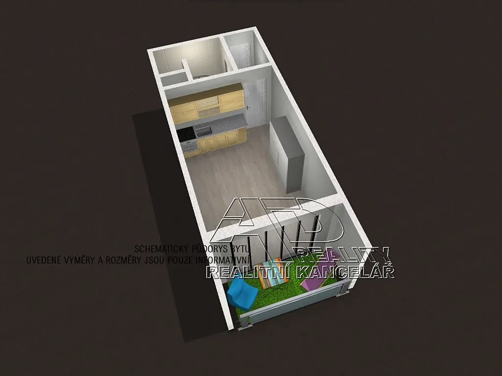 Celková užitná plocha bytu [28m2], podlahová plocha bytu [23m2] + lodžie [4,1m2] + sklepní koje cca [1m2].