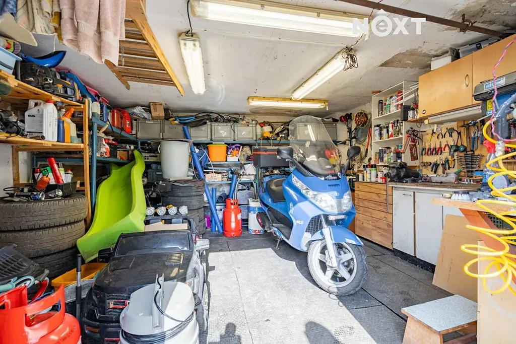 K bytu dále náleží vlastní garáž, dílna a sklepní prostory. Okolí domu je oplocené a v objektu je možnost parkování více vozidel.
