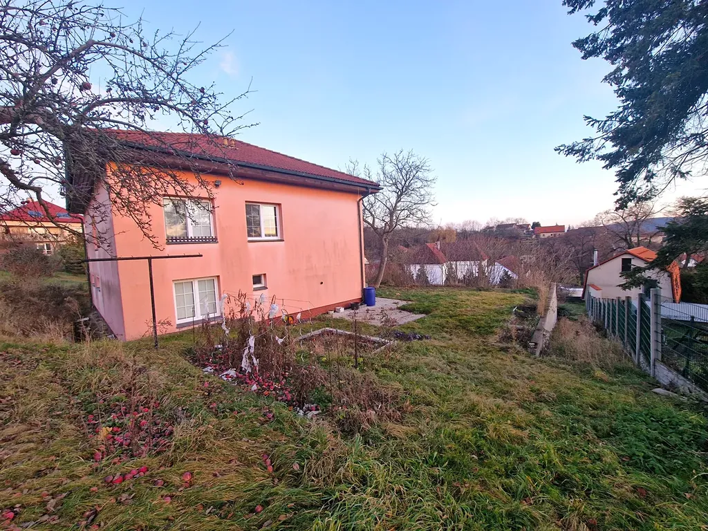 Dům se nachází v centru obce, kdy ze svažitého pozemku, jak jsem již popsal, je opravdu krásný výhled do širokého okolí. Spádovým centrem jsou 4km vzdálené Černošice.