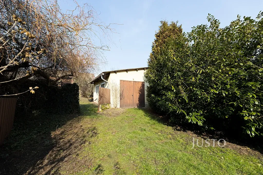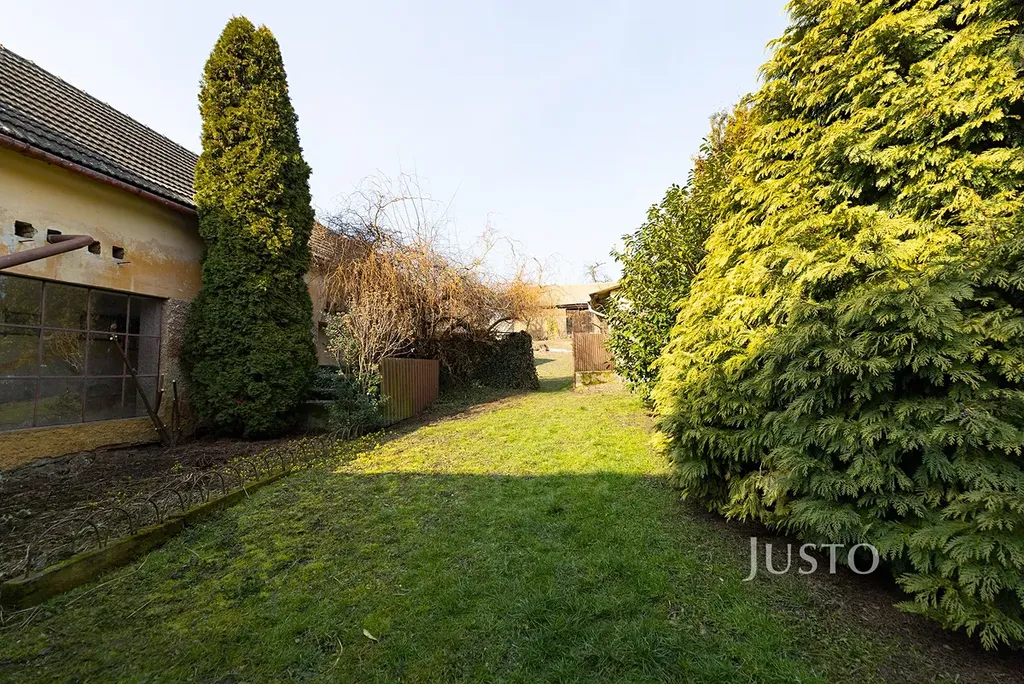 Za domem můžete kutit na dvorku a zahradě, která se zvedá do mírného kopce. Na jejím vrcholu stojí stodola s využitelnou plochou přibližně 110 m². V současnosti do ní není zavedena elektřina, ale nabízí velký potenciál pro dílnu, skladování nebo další hospodářské využití.