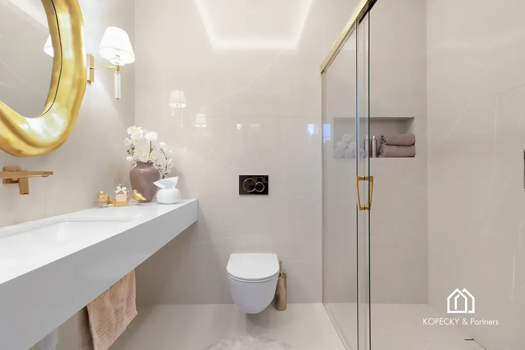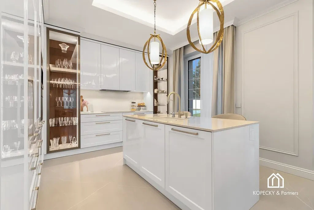 Součástí kupní ceny je nadstandardní interiérové vybavení laděné do stylu art deco, včetně designového nábytku a svítidel od renomovaných značek. Dům je díky tomu připraven k okamžitému užívání bez nutnosti dalších investic do vybavení.