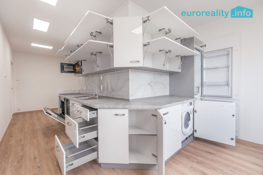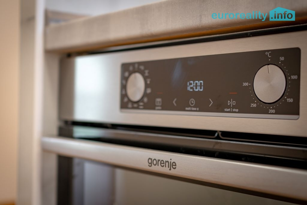 Součástí prodeje je také moderní kuchyňská linka se zabudovanými spotřebiči, konkrétně: