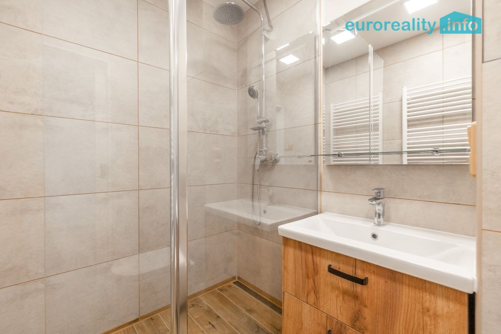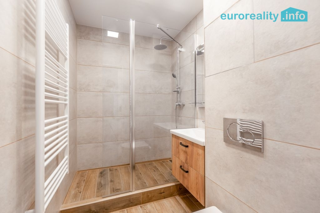 Byt byl rekonstruován s důrazem na kvalitu provedení i moderní technické řešení. V celém bytě je bezprahová plovoucí podlaha, sádrokartonové podhledy ve výšce 245 cm, kompletně nová podomítková elektroinstalace, LED osvětlení a nový elektrický rozvaděč.
