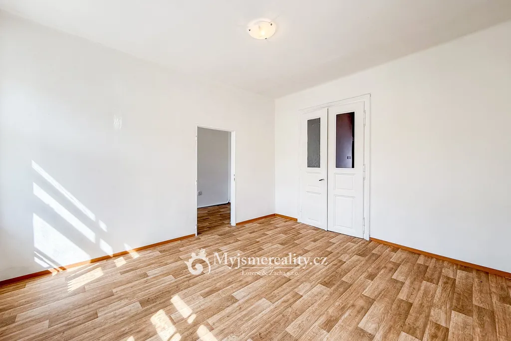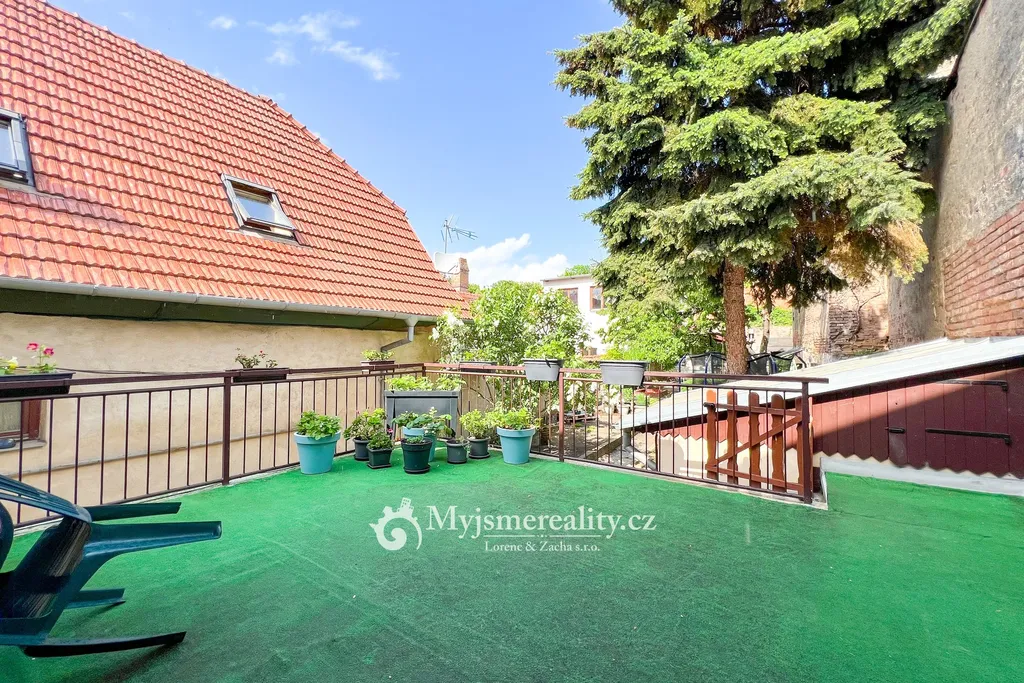 Druhé podlaží tvoří zrekonstruovaná bytová jednotka 3+1 s terasou orientovanou do klidné zahrady. Dispozice zahrnuje prostorný obývací pokoj, dvě ložnice, komoru a koupelnu se sprchovým koutem a toaletou. Kuchyň, která je přirozeným středobodem bytu, je prakticky propojena se vstupní chodbou.