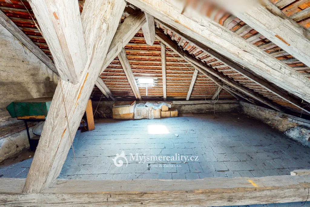 Další potenciál nabízí půdní prostor s možností vestavby, který umožňuje rozšíření obytné části nebo vytvoření další jednotky.