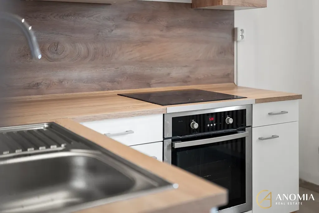 Byt disponuje velkorysou a prostornou kuchyní, která je vybavena novou kuchyňskou linkou včetně spotřebičů. Součástí je indukční varná deska, vestavná trouba, nechybí ani připravené připojení pro lednici a pro pračku. Koupelna je řešena v moderním a vkusném designu, který doplňuje sprchový kout. V bytě jsou položeny kvalitní vinylové podlahy a keramická dlažba.