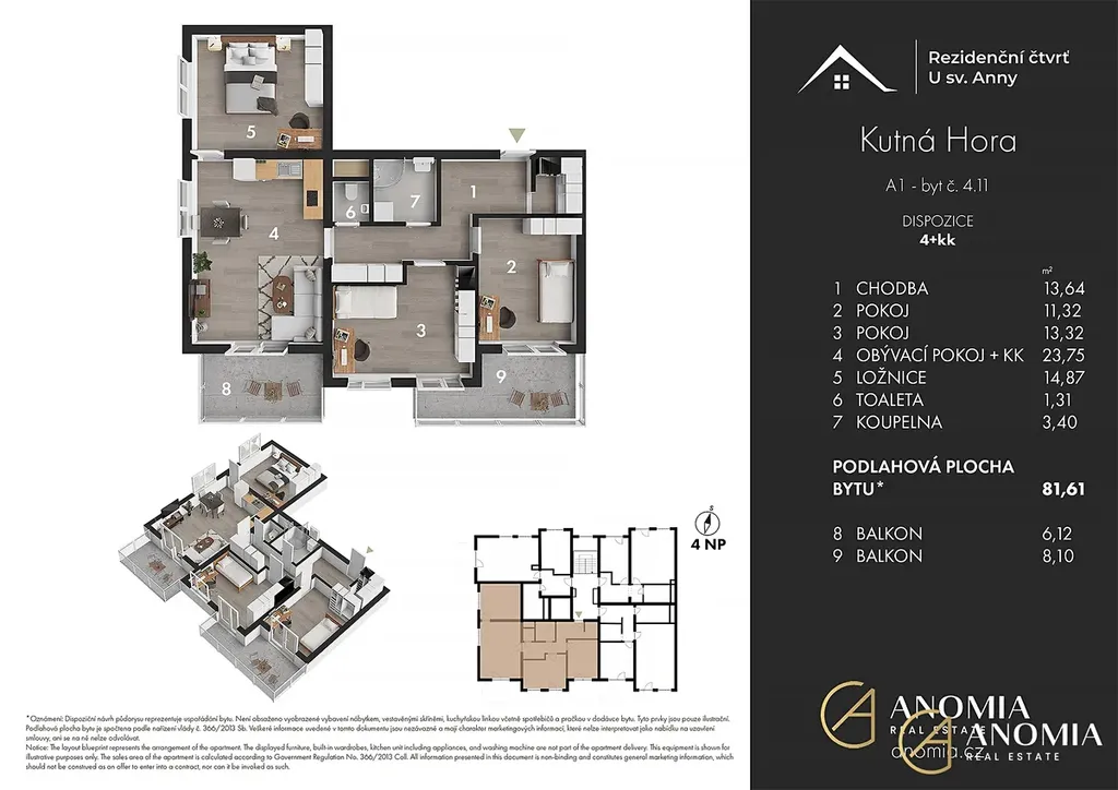 Bytová jednotka s projektovým označením 04.11 o dispozici 4+KK se nachází ve 4. nadzemním podlaží bytového domu BD_A1. Dům bude postaven jako energeticky úsporný s důrazem na použití kvalitních materiálů, které zajistí vysoký standard bydlení. Součástí je také zvuková izolace, která poskytne maximální pocit soukromí a klidu pro všechny obyvatele.