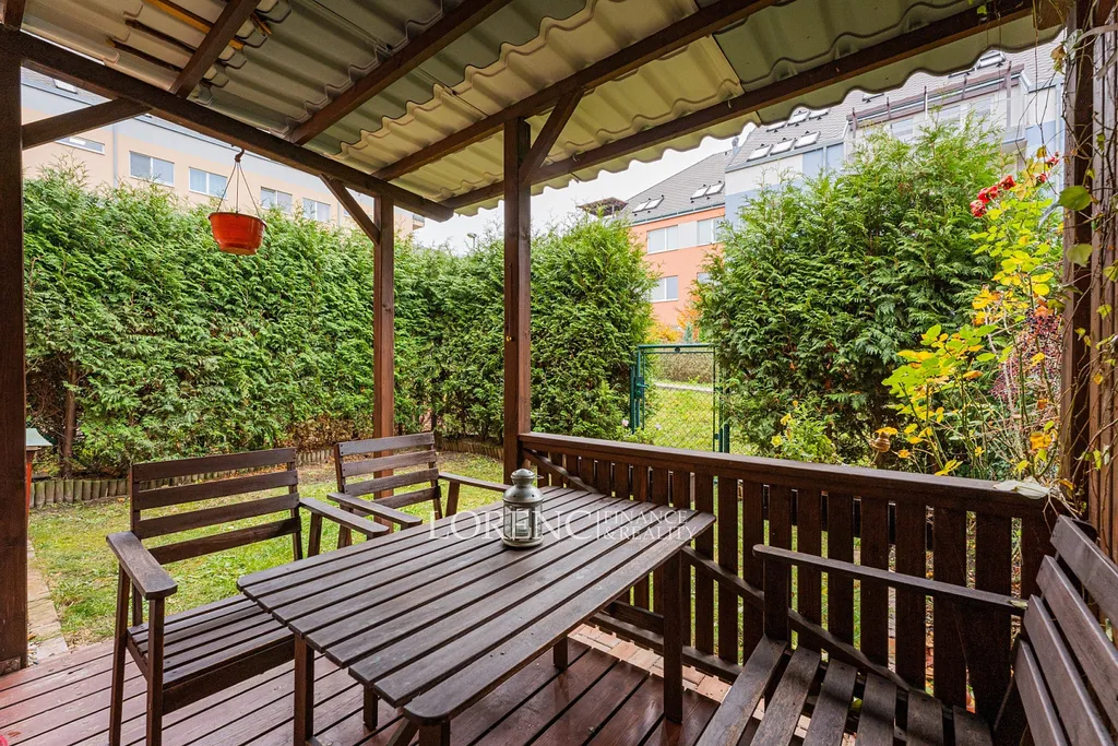 Velkou předností této nemovitosti je soukromá předzahrádka o velikosti 38 m² se samostatným vstupem. Díky vzrostlým tújím poskytuje příjemné soukromí a vytváří ideální prostor pro odpočinek, posezení s přáteli, rodinné grilování nebo relaxaci po náročném dni. Pergola navíc umožňuje využívat tento prostor téměř po celý rok.