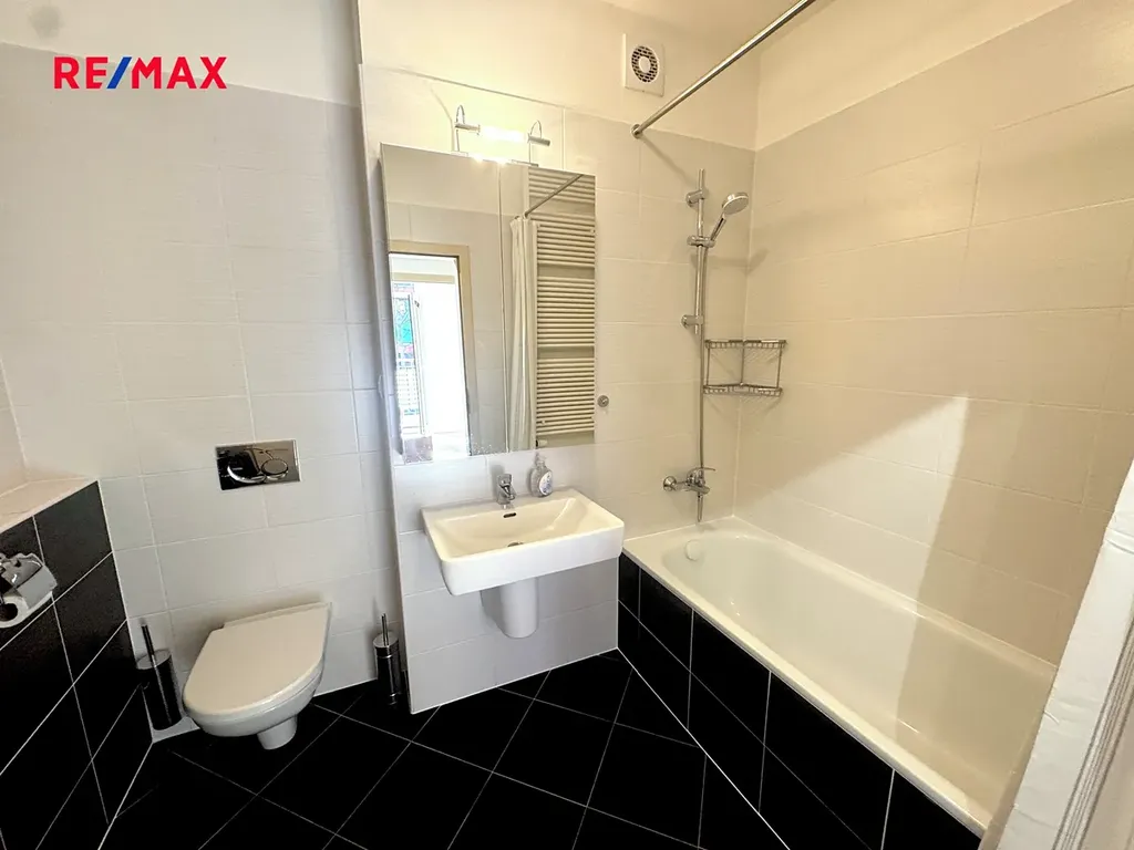 Je zde zcela nová kuchyňská linka se spotřebiči (v procesu dokončování), nové podlahy, čerstvé nátěry, žaluzie na oknech, svítidla. Prostorná vstupní chodba s praktickou komorou/šatnou, koupelna s vanou. Je nevybaven nábytkem, možnost dohody s majitelem, lze dodat i pračku či mikrovlnnou troubu. Díky velkým oknům je byt velice slunný a světlý po celý den. Vstup na balkon z obývacího pokoje i ložnice umožňuje nájemcům užívat si propojení interiéru s exteriérem každý den. K bytu náleží garážové stání.