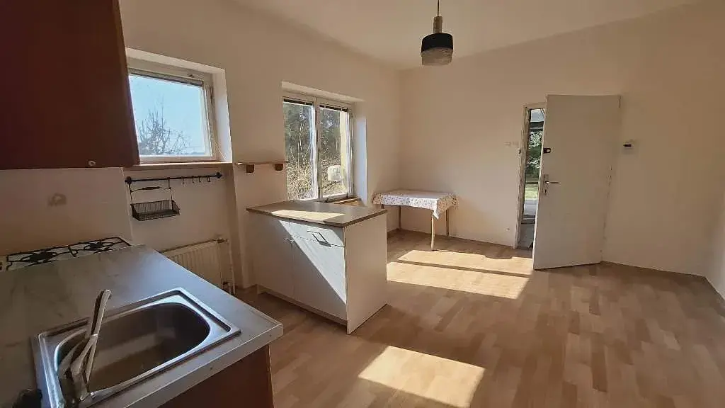 Celková obytná plocha je cca 75 m2, místnost s kuchyňským koutem je velká cca 22 m2, obytný pokoj je velice prostorný, má rozlohu cca 36 m2, lze ho nábytkem oddělit na samostatné funkční celky. Ostatní plochu tvoří koupelna s vanou, samostatné WC a prosklená předsíň (veranda). Dům je částečně podsklepený, v sklepních prostorách se nachází kotelna a úložná místnost (samostatně přístupná ze zahrady), sklepní prostory o velikosti cca 25 m2 jsou také součástí pronájmu.