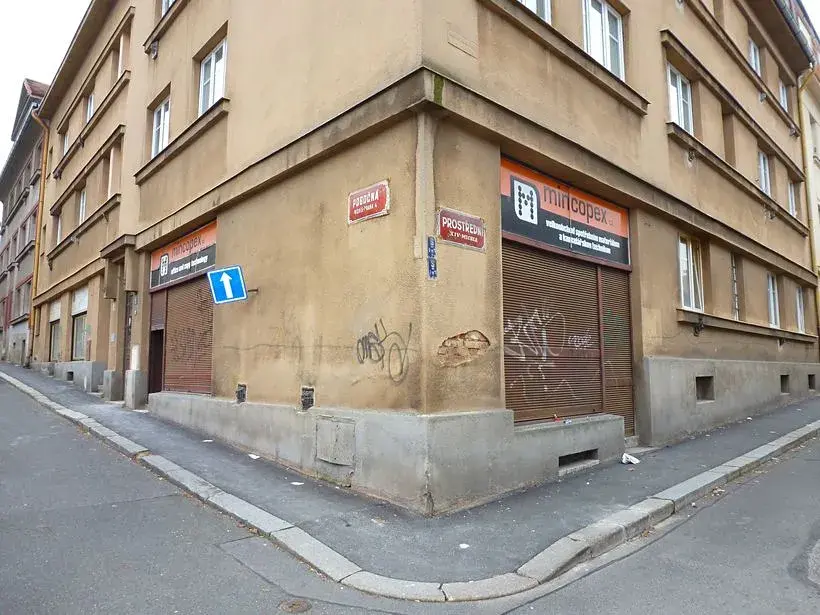Tento obchodní prostor se nachází v přízemí činžovního domu na rohu ulic Pobočná a Prostřední. Má dvě výlohy chráněné stahovacími roletami, prostor je nyní rozdělen příčkou. Vytápění WAW. Možnost skladu + 5.500, Kč. Kauce činí 22.000, Kč a provize 11.000, Kč.