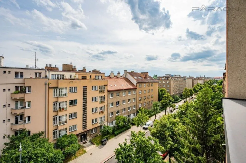 Pronájem klasického bytu 2+kk, o ploše 48 m2, v 5. patře cihlového domu s menším výtahem, v pražských Vršovicích, nedaleko metra Želivského a nákupního centra Eden.