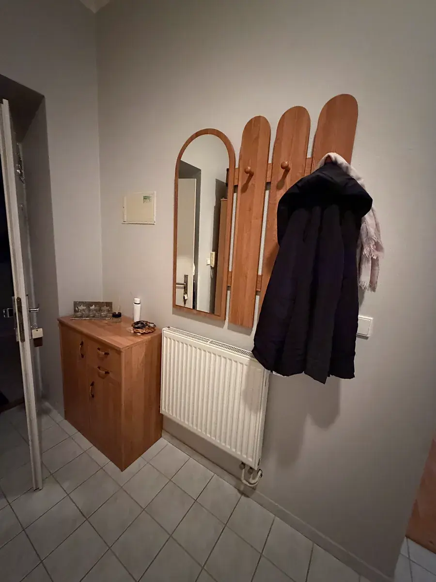 Součástí bytu je koupelna s vanou a umyvadlem a samostatné WC. V bytě je vlastní plynový kotel, který zajišťuje vytápění i ohřev vody.