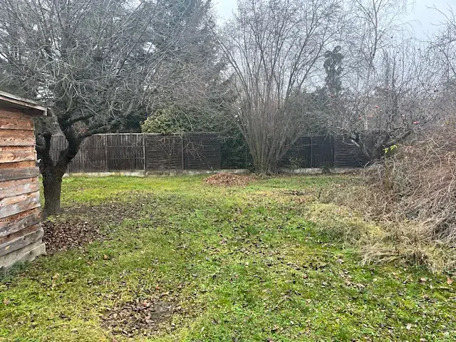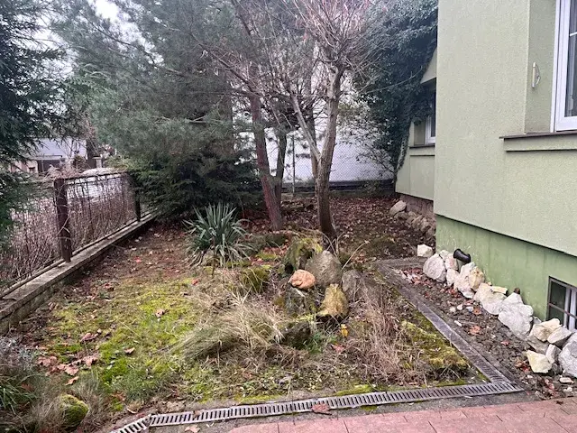 Na zahradě je několik ovocných stromů a menší altán na posezení.