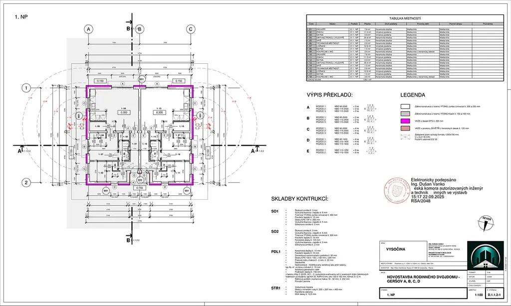 K dispozici jsou půdorysy, pohledy, situace a dokumentace ke stavebnímu povolení.