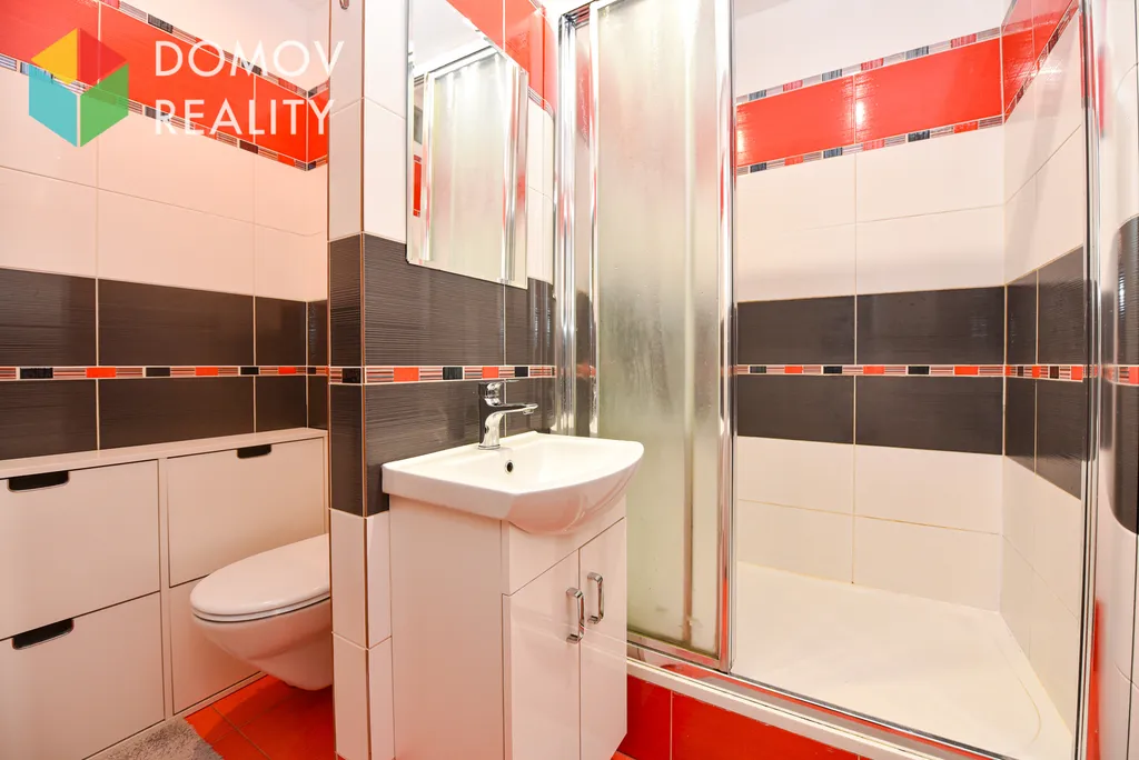 - Koupelna s WC, umyvadlem a sprchovým koutem, příjemně prosvětlená luxfery