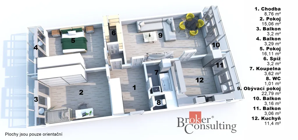 Díky své nadstandardní výměře, promyšlené dispozici a množství venkovního prostoru představuje tento byt skvělou příležitost pro rodinu, která hledá pohodlné, vzdušné a dlouhodobě příjemné bydlení.