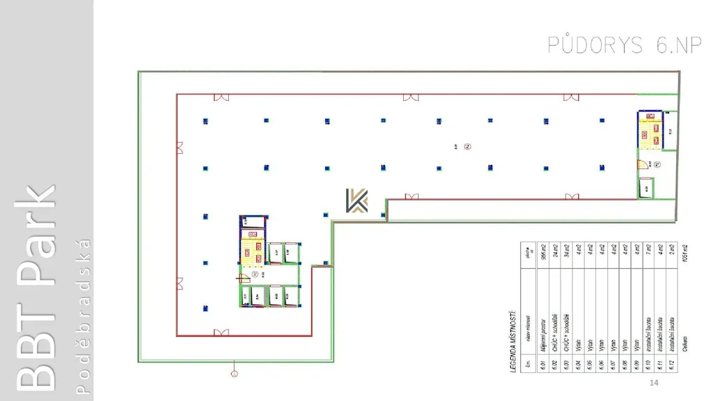 Nabízíme k pronájmu flexibilní obchodní prostor o výměře 1 156 m² + 471 m² terasa v 5. patře nové budovy na adrese Poděbradská 36. Prostory budou k dispozici od 1.1.2026, budou ve stavu shell and core a budou mít samostatný vstup z ulice (přízemí), přístup 24/7.
