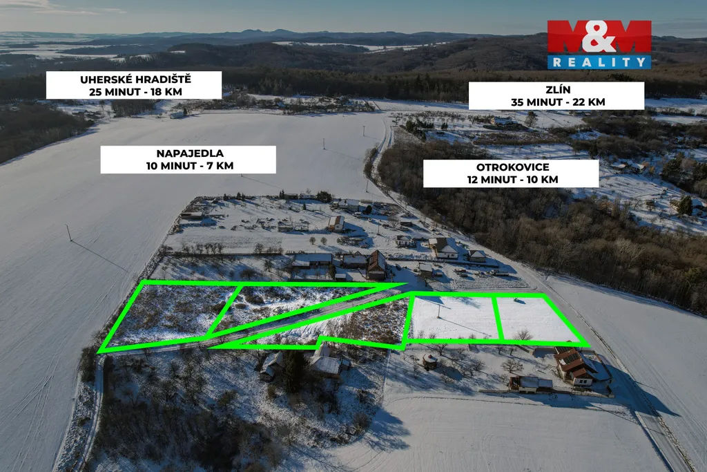 Máme pro Vás pozemek určený k výstavbě. Celková velikost nabízeného pozemku je 8949 m2 a z něj budeme rozdělovat menší pozemky. Jejich velikosti budou definovány potřebami jednotlivých zájemců. Zmíněná velikost 1700 m2 je tedy pouze navrhovanou velikostí. Tato část pozemku, je dle územního plánu vedena v BI (plochy individuálního bydlení). Pozemek je rovinatý a vede k němu veřejně přístupná komunikace. Pozemek se nachází v místní lokalitě zvané Nad Hradským. V této lokalitě jsou již nějaké rodinné domy postaveny, ale jedná se spíš o klidnou lokalitu, poskytující dostatek soukromí a krásné výhledy na okolí. Lokalita je na okraji CHKO Chřiby, ale není už součástí CHKO. Pro jednotlivé domy se předpokládá vybudování studní (je k tomu zpracován hydrogeologický posudek s rozmístěním zdrojů vody) a čističek odpadních vod. Domy, které zde budou postaveny, mohou mít 2 NP a není stanoven koeficient zastavitelnosti. Ke každému pozemku budeme připisovat také podíl na příjezdové komunikaci