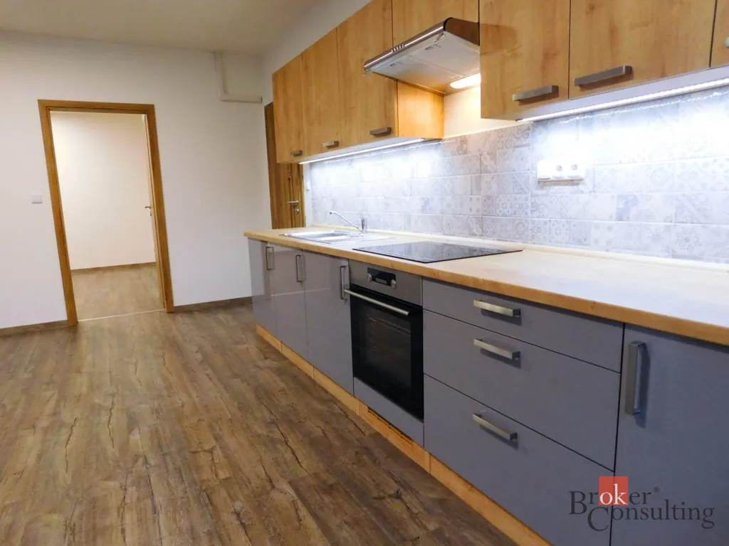 V zastoupení majitele nabízíme pronájem prosvětleného bytu 2+kk přímo na náměstí města Kyjov. Byt disponuje vstupní chodbou, ložnicí, obývacím pokojem s kuchyní, koupelnou a samostatným WC. Byt má vlastní podlahové vytápění a vlastní ohřev vody. Je zařízen moderní kuchyňskou linkou se spotřebiči. Nachází se ve druhém nadzemním podlaží cihlového domu, podlahová plocha je 67 m2. K bytu je možné navíc pronajmout parkovací stání ve vnitrobloku domu. Nájemné činí 15.000 + 2.500 zálohy na energie, kauce je jeden nájem + energie. Provize činí jeden nájem + DPH. Fotografie jsou pouze ilustrativní, a to z vedlejších bytů ve stejném domě, kde je vybavení a provedení všech bytů velmi podobné.